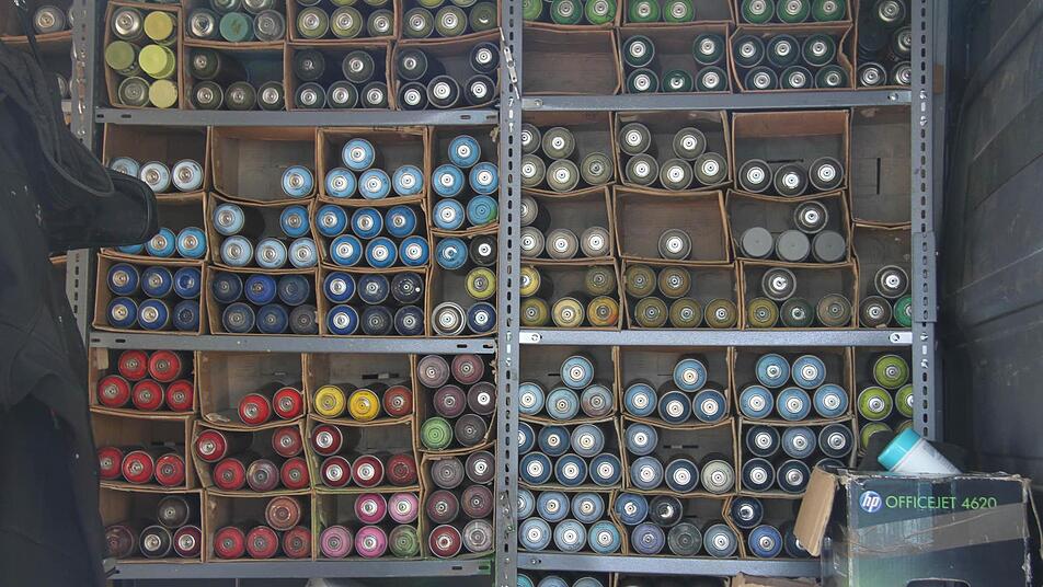 Die beiden Sprayer der Firma art-efx aus Potsdam hatten übrigens ein "Spraymobil" mitgebracht. In einem Lieferwagen haben sie mehr als hundert verschiedene Farbtöne Dosen gelagert. "80 werden wir sicherlich brauchen", schätzte Markus Ronge.
