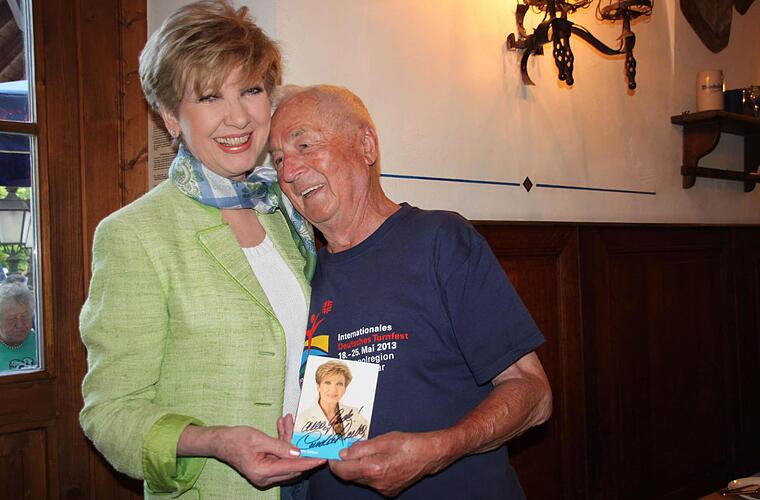 Der Kulmbacher Fred Seehuber hat Autogrammkarten und Fotos mitgebracht. Damit spielt er auch anderen die Bälle zu: "Mensch bin ich da noch schlank", bekennt die ehemalige Kulmbacher Oberbürgermeisterin und jetzige Landtagsabgeordnete Inge Aures beim Anblick eines Bildes, auf dem sie gemeinsam mit Reiber den heute 82-jährigen Kulmbacher einrahmt. Erinnerungen werden wach an die PS-Gala der Kulmbacher Sparkasse im Jahre 2000, bei der das Foto entstanden war, und an die Bayern Tour am 1. Juli 1997, die an diesem Abend noch für schmunzelnde Gesichter sorgen wird.