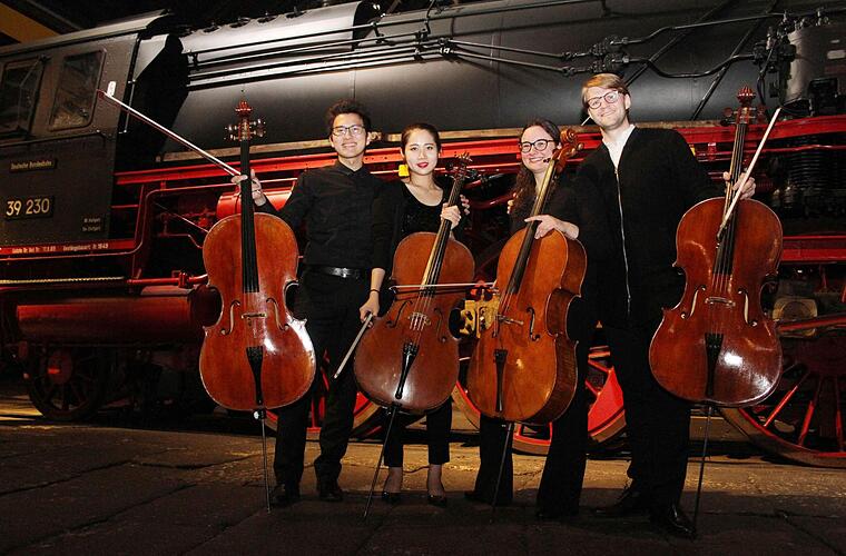 Beim Konzert im Lokschuppen präsentierten sich die vier Nachwuchs-Cellisten, von denen man sicherlich in den nächsten Jahren noch einiges hören wird, allerdings nicht nur solistisch, sondern sie hatten - gemeinsam mit dem Professor - auch Quartett-Werke zum Genießen einstudiert. Die Palette reichte von Georg Christoph Wagenseils "Sonata in D" bis zum Vorspiel von Giuseppe Verdis "La Traviata" oder Richard Wagners "Feierlichem Stück".