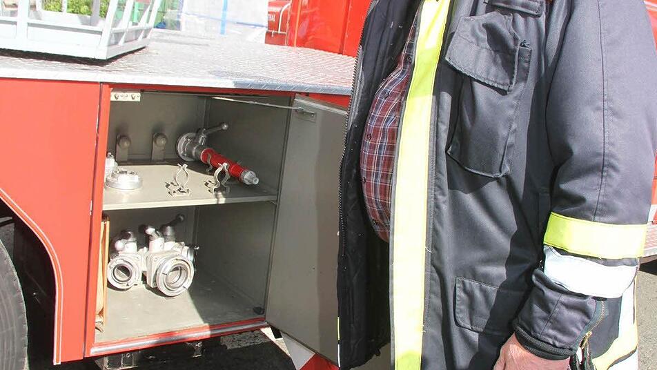 Und weil keine Ausstattung mehr bei der Drehleiter dabei war, hat die Feuerwehr Kulmbach kurzerhand gekramt und zeitgenössische Schläuche, Kupplungen und anderes Zubehör, das heute längst ausgemustert worden wäre und natürlich nicht mehr den aktuellen technischen Anforderungen an eine Wehr entprechen würde, als Ausstattung beigefügt.
