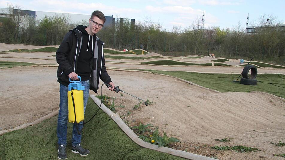Sebastian Winterstein jätet auf der Rennstrecke Unkraut. "Das wächst leider sehr schnell", kennt Winterstein das Dilemma an der neuen Strecke. Und natürlich sollten Löwenzahn nicht auf der Rennfläche wachsen.