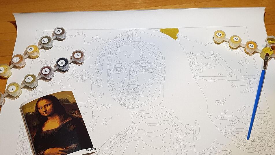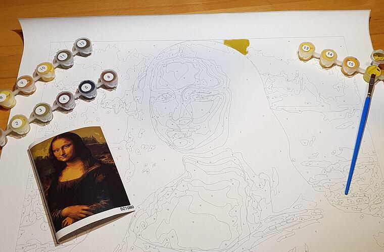 So kam es, dass ich nun Abend für Abend vor einer Leinwand sitze, auf der Stück für Stück die Mona Lisa entsteht. Nicht kleckern, sondern klotzen, habe ich mir gedacht und bei "Malen nach Zahlen" ganz bescheiden gleich eine der schwierigsten Vorlagen ausgesucht. Früher habe ich Ponys gepinselt, heute eben Da Vincis großes Meisterwerk (okay, ich brauche dafür mittlerweile ein Vergrößerungsglas und extra Licht).