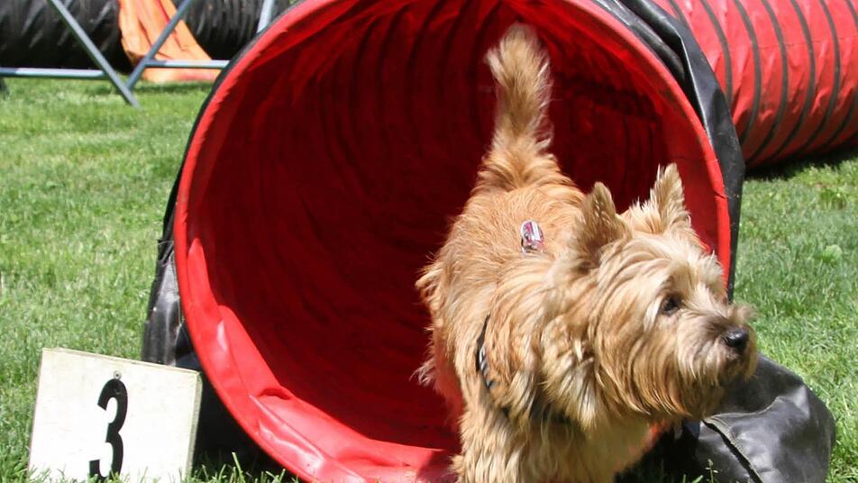 Uschi Erbachers Cairn Terriers Emil und Dolly mögen Agility, sagt die Hundebesitzerin. Emil lässt sich auch nicht lange bitten, kriecht durch Tunnel oder balanciert über hohe Gestelle. "Das fördert das Selbstbewusstsein und ist auch für ängstliche und unsichere Hunde gut", weiß Uschi Erbacher. Auch Suchtraining gehörte zum Programm. Dazu versteckt sich Chefin Gela Zapf im Unterholz. Doch die Vierbeiner haben sie in nur wenigen Sekunden in ihrem Versteck ausfindig gemacht.
