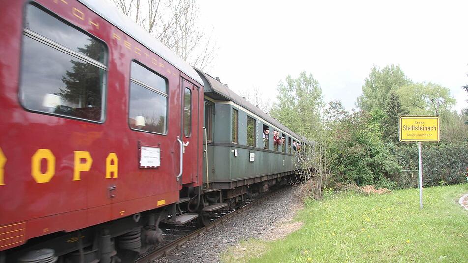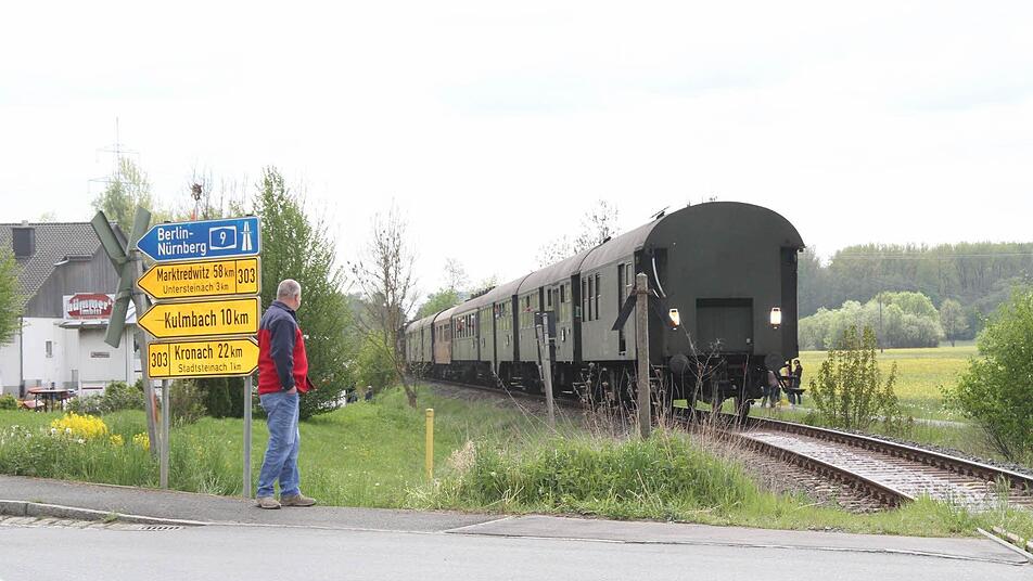 Mit lautem Hupen und Tröten nähert sich die gigantische Dampflok Stadtsteinach. Fotoapparate klicken. Hunderte Menschen drängeln sich im Güterbahnhof Stadtsteinach, wo normalerweise nur Steine verladen werden. Die Dampflok zieht diesmal Passagierwaggons. Hunderte von Menschen säumen auch die Strecke zwischen Untersteinach und Stadtsteinach. Denn dort verkehren schon lange keine Passagierzüge mehr. Nur ein paar Jahre nach dem Krieg gab es Personenverkehr.