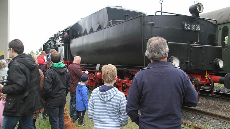 In Stadtsteinach hat er es eilig. Denn die Lok muss umgekoppelt werden. Und die Menschen gehen einfach nicht von den Gleisen. Die Bahnverantwortlichen haben alle Hände voll zu tun, um die Fotografen und Bahnfans fernzuhalten.