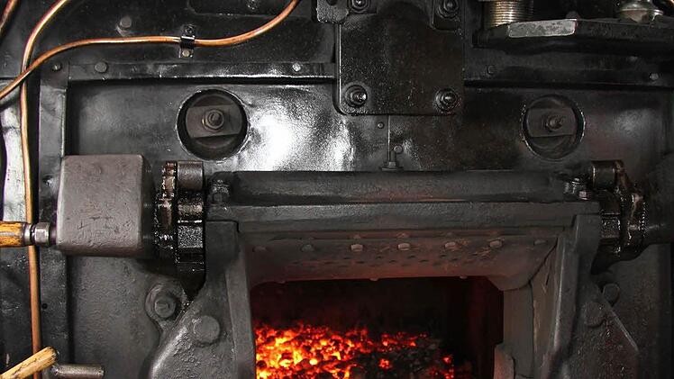 Zwei Tonnen Kohle auf 100 Kilometer An Schäfers Seite ist Heizer-Azubi Max Kramer. Und außerdem ist noch Triebfahrzeugführer Sebastian Pfaller und ein weitere Heizer mit von der Partie. Denn die Lok muss, weil sie den ganzen Tag unterwegs ist, mit doppelter Mannschaft besetzt sein. "Heute brauchen wir nicht so viel Kohle - zwei Tonnen auf hundert Kilometer", sagt Sebastian Pfaller und öffnet das Innere der Dampflok. Die Kohlen glühen rot.