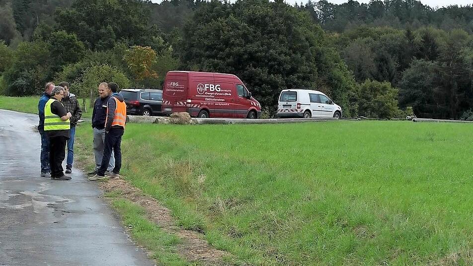 Doch neben dem regnerischen Wetter scheiterte dieses Vorhaben zunächst an einem anderen Umstand: Das Kabel zur Netztrennung, das bergaufwärts an der rechten Straßenseite vor der Böschung verlegt wurde, wurde mit ungeeignetem Material verfüllt. "Das Erdreich lässt sich nicht verdichten. Das kann ich so nicht abnehmen", konstatierte Bauleiter Erich Luthardt von der Kulmbacher Ingenieurplanungsgesellschaft iplan. Er ordnete an, dass der Kabelgraben noch einmal geöffnet, in einer Tiefe von 30 bis 40 Zentimetern Schotter eingebracht und das Erdreich dann verdichtet wird. Ansonsten könne die Tragfähigkeit nicht garantiert werden.
