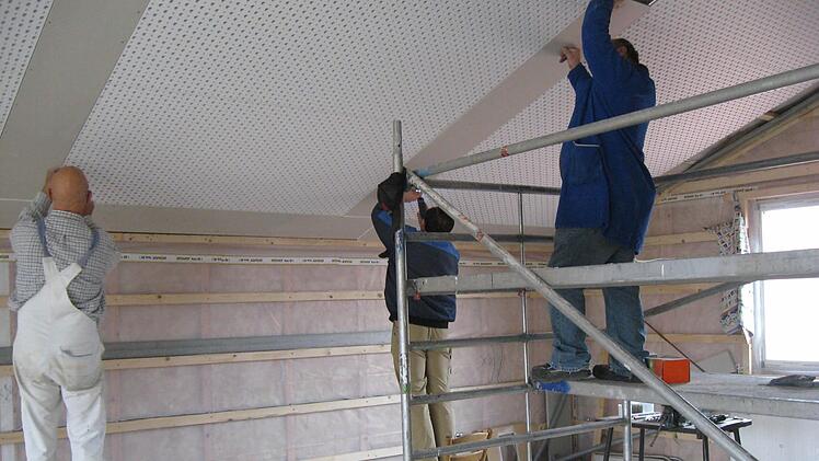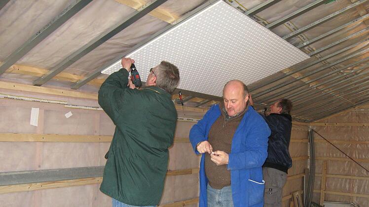 In die Hochphase gingen die Arbeiten 2014. Die Fußbodenheizung wurde verlegt, Isolierung und die Akustikdecke aufgebracht. "Ich danke allen, die sich eingebracht haben - unserer Bauaufsicht, dem Gerhard Hacker und unseren Männern für alle Fälle, der Rentner-Gang und unseren Frauen, die die Versorgung sichergestellt haben", sagt Laschinsky stolz.