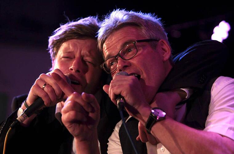 In seinem Theater präsentierte er am Samstag die Kripo-Rocker - und bescherte den den Besuchern einen einzigartigen Abend.Ausschließlich Coverversionen von Rock-Klassikern waren zu hören, präsentiert mit viel Herzblut, garniert mit Geschichten und Anekdoten rund um den Rock'n'Roll. Wer weiß schon, dass Buddy Holly "That'll be the day" in einer Herrentoilette aufgenommen hat - weil da der "Hall" so schön war? Heute sorgt für den "Hall" der Computer. Aber "That'll be the day" klingt mitreißend wie damals.