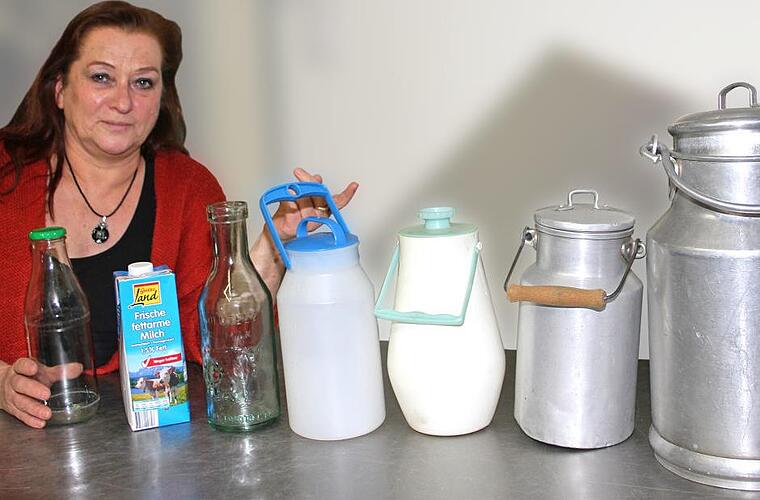"Aber es hat sich trotzdem viel getan", findet Ursula Willenberg, die seit mehr als 40 Jahren den Bereich Hauswirtschaft am Amt für Ernährung, Landwirtschaft und Forsten Kulmbach, betreut. Mit einem Handgriff holt sie eine Milchkanne aus dem "Reliquienschrank" in der Hauswirtschaftsschule: "Mit solchen Milchkannen ist man früher zum Bauern und hat abends seine Milch geholt. So viel, wie man eben am nächsten Tag gebraucht hat", erzählt sie. Im Laufe der Jahre wurden die Milchkannen kleiner, die Zahl der Menschen mit Laktoseintoleranz größer. Es kamen Kannen aus Kunststoff und Plastik zum Einsatz. "Heute sieht man natürlich überall Milch im Tetrapak, aber die Zeit der Rückbesinnung hat begonnen. Es ist wieder in, Rohmilch direkt vom Landwirt zu holen - in Glasflaschen", so Willenberg. Auch in manchen Supermärkten kann schon Milch aus der Region gezapft werden.