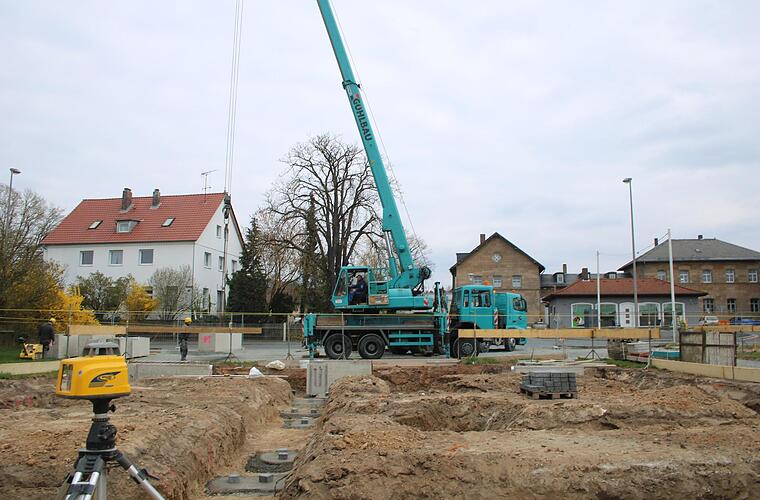 Die Arbeiten für die Fundamente sind bereits in vollem Gang, erklärt Projektleiter Sebastian Türk und blickt bei seinem Rundgang über das Erdreich in Richtung Bahnhof. Der befindet sich direkt gegenüber auf der anderen Seite der Mainleuser Hauptstraße.