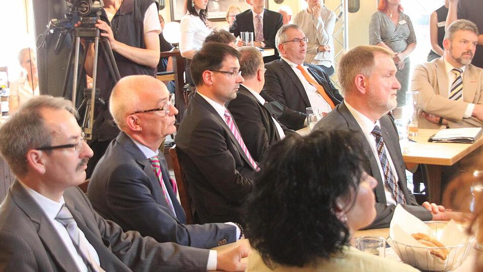 Als Kämpfer für die Region gab sich auch Söder gleich zu Beginn des 90-minütigen "Stadtgesprächs", das von der Kulmbacher Bank präsentiert wurde. "Wir sind mitten in Europa, das müssen wir stärker ausspielen", erklärte er. Zugleich stehe Oberfranken vor den schwierigsten strukturellen Herausforderungen in ganz Deutschland, weil sich sowohl Höchstförderungs- als auch Niedriglohngebiete in unmittelbarer Nachbarschaft befänden.