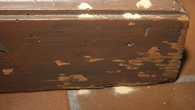 "Man sieht sofort, dass es sich um den Holzwurm handelt", urteilt Hans Brütting und zeigt auf die Löcher in den Bänken. Die Holzwürmer befallen nie frisches Holz, sondern nisten sich nur in verarbeitetem Trockenholz ein. "Auch an der Orgel sieht man schon Spuren", haben die Fachleute entdeckt.