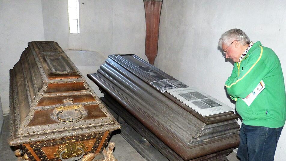 Himmelkron nahm Reinhard Stelzer von der Gemeindeverwaltung, der den Tag in dem früheren Klosterdorf wieder verantwortlich organisiert hatte, gemeinsam mit Heide Bächer und Klaus-Dieter Schoberth drei Führungen der Markgrafen- beziehungsweise Stiftskirche vor. So konnten die Besucher zum Beispiel in der Fürstengruft, die gestern geöffnet war, die markgräfliche Prachtinszenierung auch an der Sargausstattung des letzten Markgrafen von Bayreuth ( Friedrich Christian, 1708 - 1769) in Augenschein nehmen.