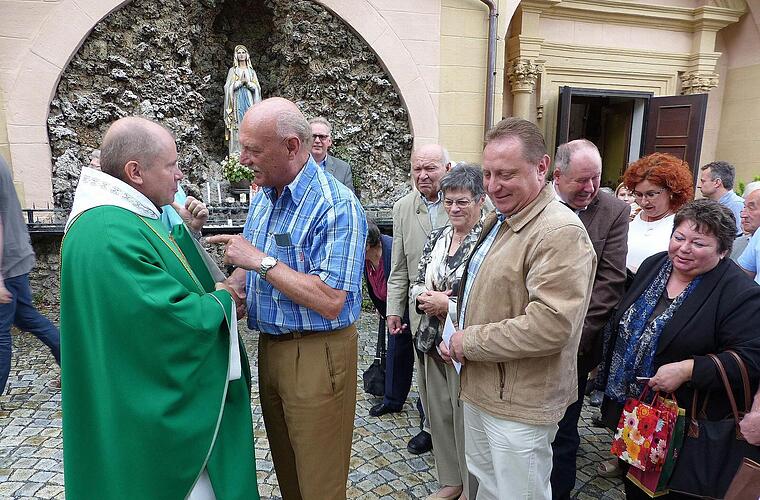 Pfarrgemeinderatsvorsitzender Oswald Purucker erinnerte daran, dass Pater Alard Anfang des neuen Jahrtausends als junger Kaplan die Pfarrei Marienweiher kennen lernen durfte. Nach dem plötzlichen Tod des langjährigen Seelsorgers Pater Serafin konnten die Christen ihn dann vor fast hundert Monaten wieder im Wallfahrtsort begrüßen. Nach acht Jahren, "die wie im Flug vergangen sind", folge er nun dem Ruf der Breslauer Franziskaner und übernehme die Ausbildung der Ordensleute im schlesischen Glatz.