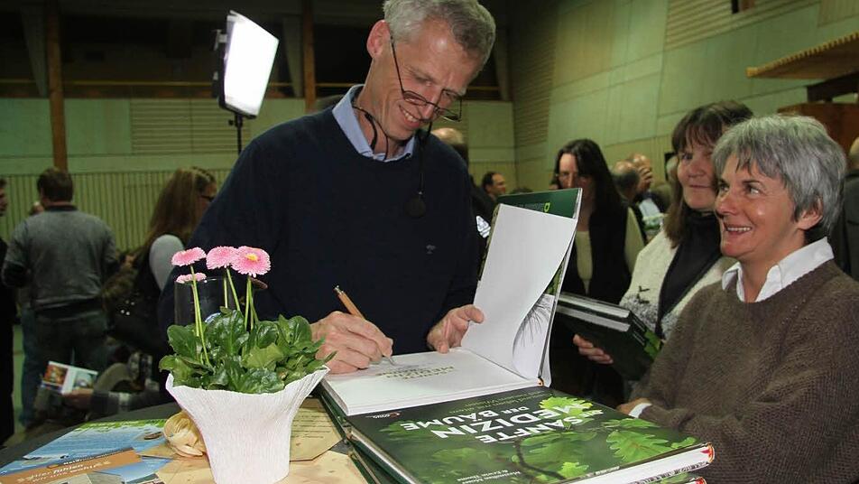 So stellen die Mikroorganismen innerhalb von wenigen Minuten, nachdem ein Baum verletzt ist, ihre Arbeit und ihre Lieferungen komplett um. "Der Baum hört sofort auf zu wachsen, er heilt erst die Wunde. Erst wenn es ihm wieder gut geht, sendet er wieder Signale, dass er wachsen will", erklärte Thoma sehr anschaulich die Welt der Bäume. "Wenn eine Buche oben angekommen ist, dann wirft sie Millionen von Bucheckern ab. Und wenn dann so eine Buche Mutter geworden ist, dann nimmt sie nur noch so viele Nährstoffe auf, wie sie zum Überleben braucht, der Rest wird den Kindern zur Verfügung gestellt", offenbarte der "Baumflüsterer".