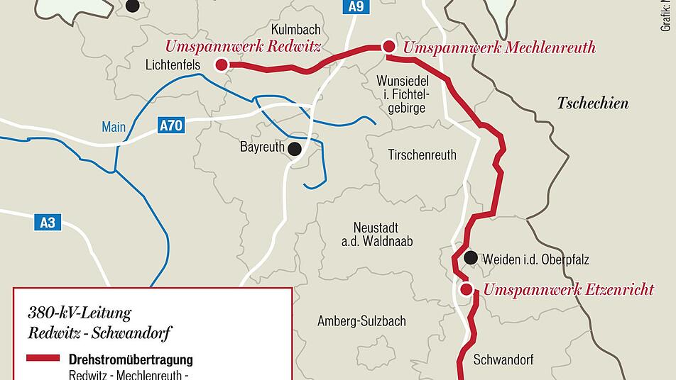 Die Firma TenneT ersetzt die Leitung zwischen Redwitz und Schwandorf durch ein leistungsstärkeres System. Die Bürgerbeteiligung beginnt am kommenden Montag in Marktleugast.