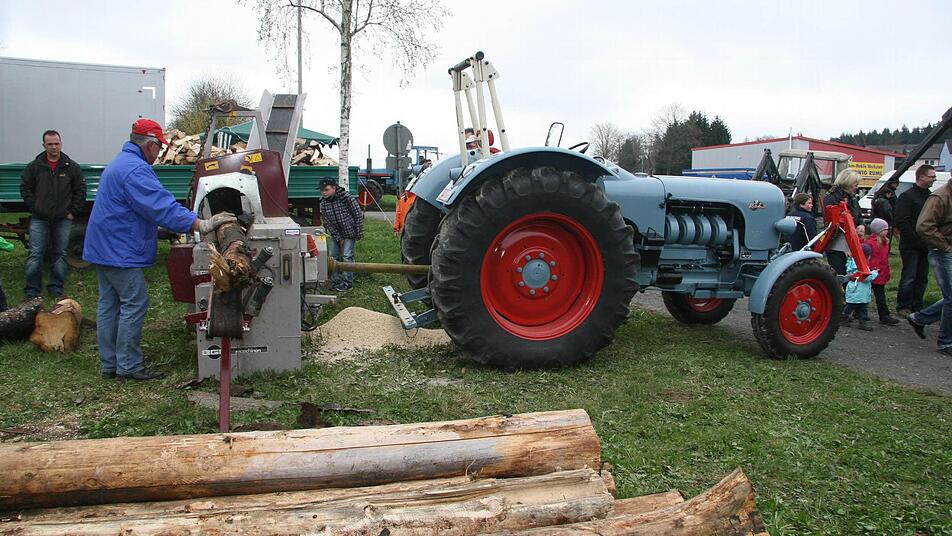 Für die Besucher, denen die Skater zu rasant waren, gab es beim Georgimarkt jede Menge anderer Dinge zu sehen: Die Traktor freunde aus Reichenbach und aus Altenplos zeigten ihre Schätzchen. Praktisch wurde es bei den Vorführungen von An dreas Vogler und der Waldbesitzervereinigung auf dem Platz oberhalb des Friedhofes.