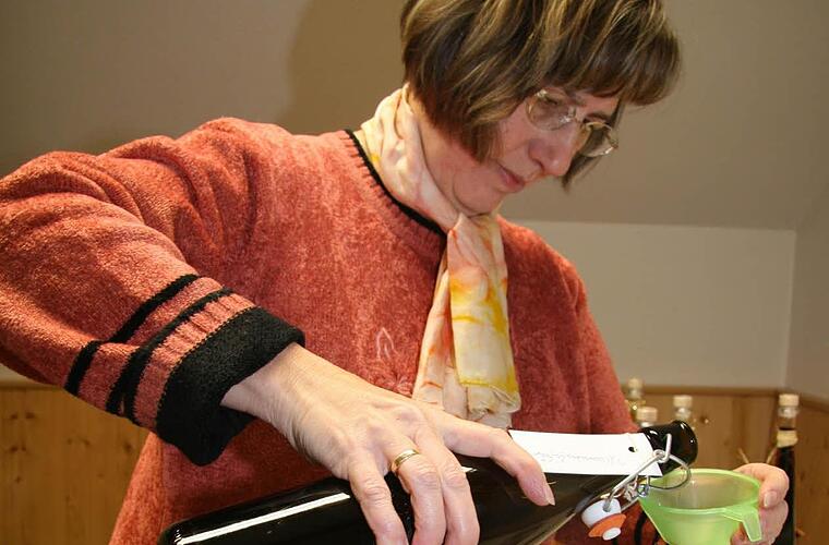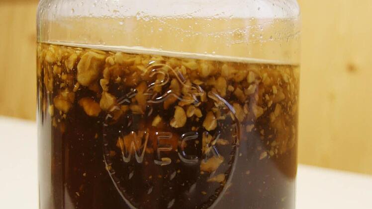 Kräuterlikör in der Testphase In allerletzter Minute füllt Ulrike Utz noch ein bräunlich-gelbliches Gebräu mit vielen Kernen drin, ab. "Das ist Nusslikör", erklärt sie. Natürlich auch aus Wartenfelser Nüssen.
