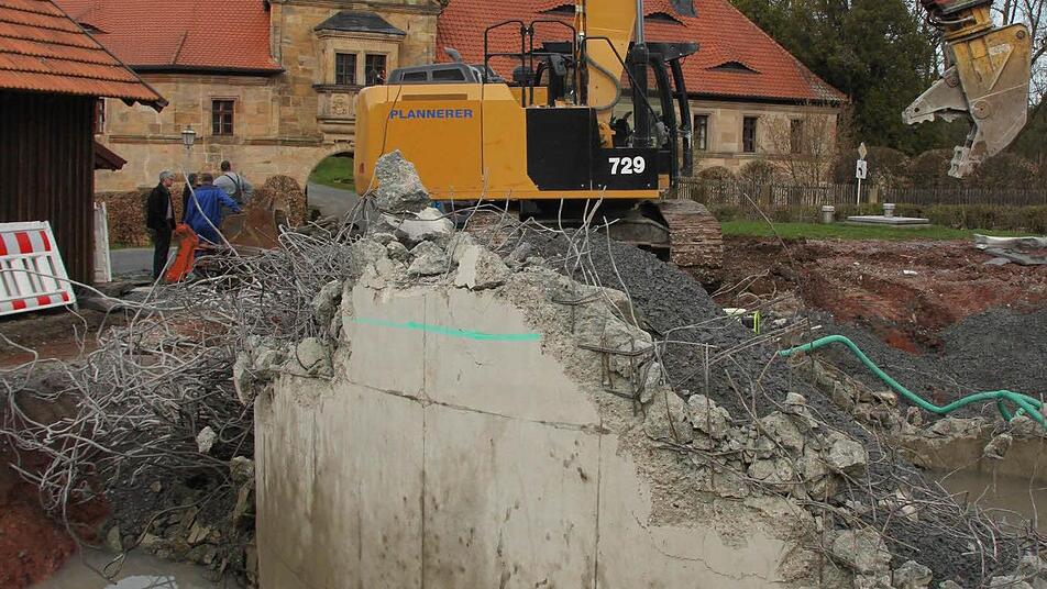 Die Arbeiter der Firma Plannerer aus Pullenreuth rissen den umstrittenen Löschwasserbehälter im historischen Ortskern in Wernstein ab. Das Bauwerk hatte monatelang die Gemüter erregt und die Denkmalschützer sowie Schlossherrin Iris von Künßberg-Schmidt auf die Barrikaden gebracht.