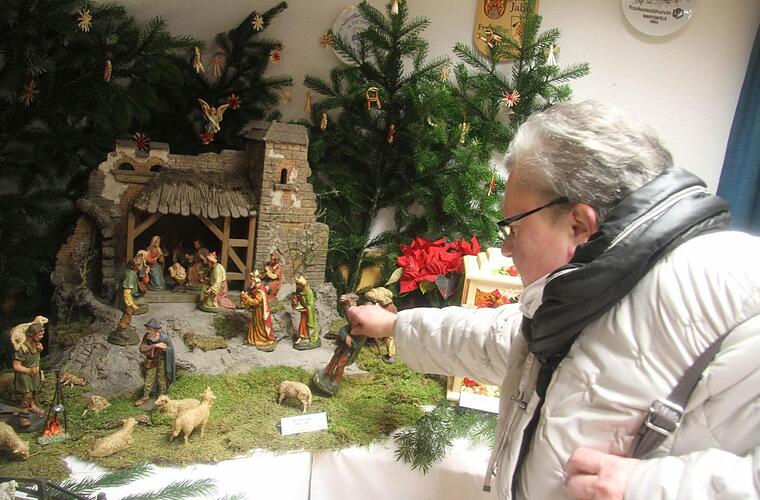 Gustav Tempel hatte sich wieder große Mühe gegeben, zwanzig wunderschöne und sehr unterschiedliche Krippen zu präsentieren. Aus der ganzen Region stellten Menschen ihre Darstellungen der Geburt Christi zur Verfügung. Es gab orientalische Krippen mit Figuren, die wirklich in Stoff gekleidet waren, zu sehen; die Besucher bestaunten alpenländische Krippen, eine Krippenlaterne und andere sehr unterschiedliche Interpretationen der Geburt Jesu. Jede Krippe fasziniert auf ihre ganz eigene Weise, ob sie nun aus handgeschnitzten, naturbelassenen Figuren besteht oder ob sie witzige Szenen integriert.
