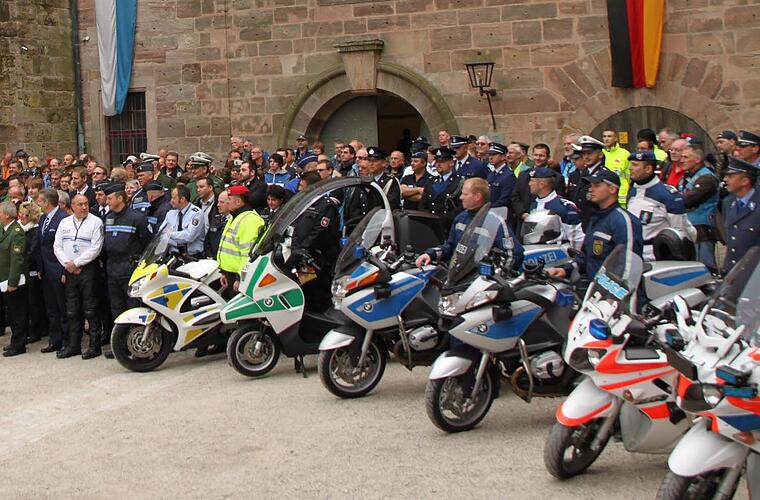 Auch motorradfahrende Polizisten kommen als Besucher zur großen Sternfahrt nach Kulmbach. Die "Blue Knights" gehören zu einer weltweiten Vereinigung. Sie wollen "weg vom Rockerimage" der Motorradfahrer.