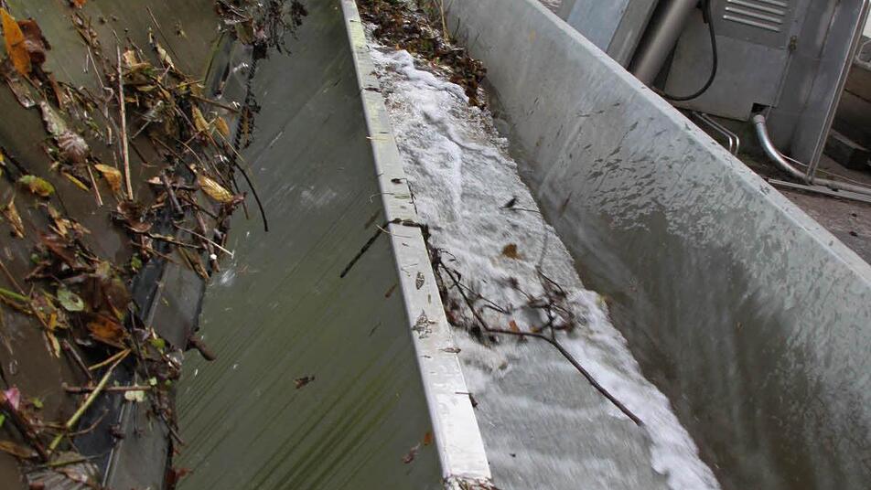 Mit einem etwa neun Meter langen hydraulischen Rechen wird das angeschwemmte Material aus dem Kanal gefischt. "Bei Hochwasser alle paar Minuten", erklärt der Kraftwerkswärter. Äste und Unrat werden in eine Rinne geschaufelt und mit einem starken Wasserstrahl in ein Auffangbecken gespült, dort aussortiert. Zwei Turbinen produzieren zusammen maximal 300 Kilowattstunden. "Für ein kleines Gewässer kommt schön was raus", sagt Handlbauer.