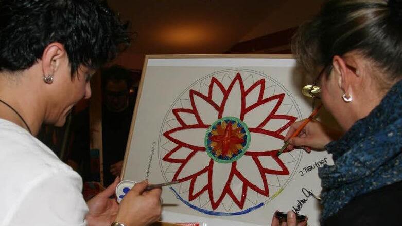 Viele Künstler und Kulturfreunde, die schon immer mal etwas Neues ausprobieren wollten, versuchten sich an der Mandala-Technik auf Glas. "Das Gemeinschaftsbild der letzten LQN-Nacht geht nach Marktleugast, auch wenn die noch keine neues Rathaus haben", erklärte Angelika Leinfelder - sehr zur Freude von Bürgermeister Norbert Volk.