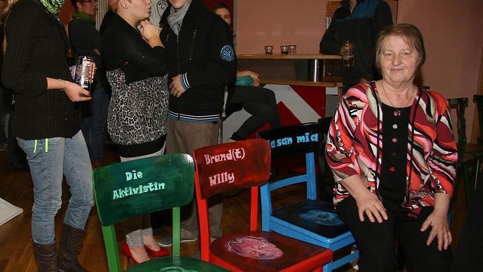 Sitz-Bilder Eine schräge Idee hatte Sigrid Groß aus Stammbach. "Ich sag immer, mir ist die Leinwand ausgegangen", lachte sie. Tatsächlich malt sie Porträts auf alte Holzstühle.