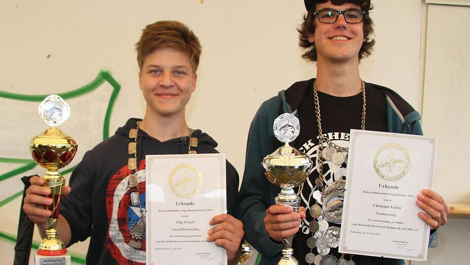 Die glücklichen Gewinner des Königsfischens sind bei den Jugendlichen Filip Frosch (15) - er fing einen 7,2 Kilo schweren Karpfen - sowie bei den Erwachsenen Christoph Kubin. Er ist vor zwei Jahren noch bei den Jugendlichen gestartet, war auch im Jugendbereich schon einmal Fischerkönig. In diesem Jahr holte er 5800 Gramm Fisch aus dem See. Sein Prunkstück war eine 2280 Gramm schwere Brachse.