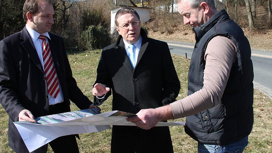 Die Stadt Kulmbach hat allein für die Instandsetzung der Klinikumszufahrt eine Viertel Million Euro im aktuellen Haushalt eingestellt. Die Straße soll im unteren Bereich - von der Kreuzung bis nach der steilen Kurve (ungefähr bis zu der Stelle, wo die Parkplätze quer zur Fahrbahn beginnen) - um 1,40 Meter verbreitert werden. Ingo Wolfgramm vom Planungs- und Bauamt und der Oberbürgermeister waren vor Ort. Auch Anwohner Alexander Meile, der täglich den Begegnungsverkehr miterlebt, war mit von der Partie.