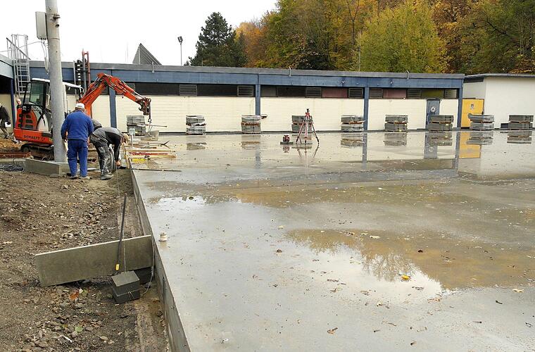 Die Sanierung war notwendig geworden, weil der Beton der Laufpiste porös geworden war und damit keine durchgehende Eisfläche mehr hergestellt werden konnte.