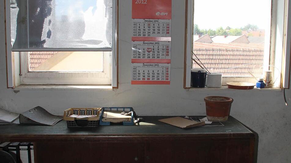 Der Zustand der Hallen ist marode, vor allem dort, wo die Dächer undicht sind. Nur noch wenige Maschinen warten darauf, abgeholt zu werden. Praktisch alles, was sich zu Geld machen ließ, ist weg. Zurück geblieben sind Schrott und Dreck. Sebastian Türk blutet das Herz, wenn er durch die verlassenen Hallen der Kulmbacher Spinnerei geht.