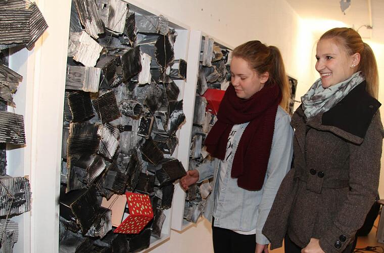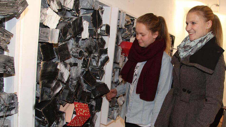 "Eigentlich ist Kunst ja immer etwas Schönes, aber das hier ist es eigentlich richtig gut, wenn es hässlich ist. Eigentlich ist es erst dann gut gelungen", spricht Sophie Höreth (17) die Intention der Slum-Collagen an. Beim Aufhängen legt Katrin Brehm (17) noch einmal letzte Hand an und bessert bei der Lackierung nach. Katrin Brehm gefällt das bunte Haus mit einem getupften Dach, das mitten im Bild für Aufmerksamkeit sorgt, richtig gut. "Das soll ja abstechen, das ist ein richtig guter Kontrast", sagt Katrin Brehm, die neugierig darauf ist, was die Vernissage-Besucher über die Kunstwerke sagen werden.