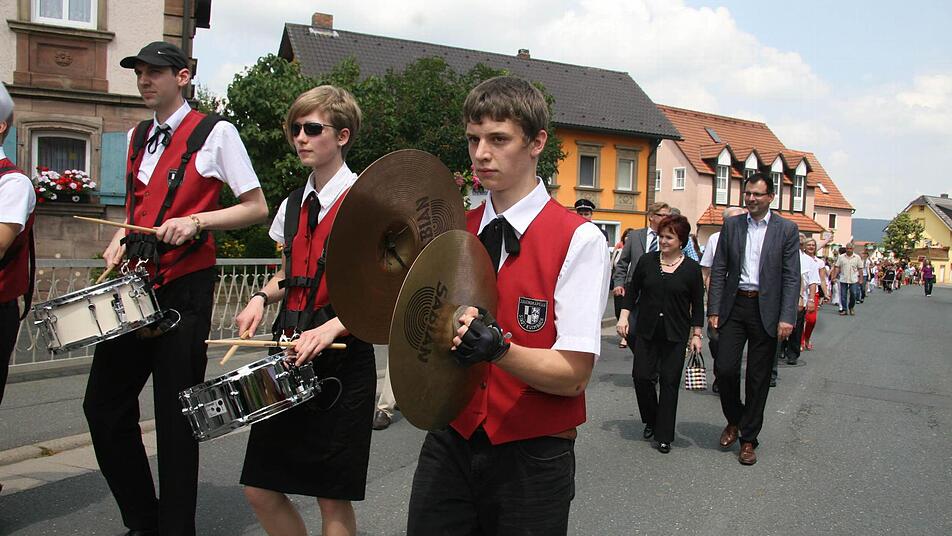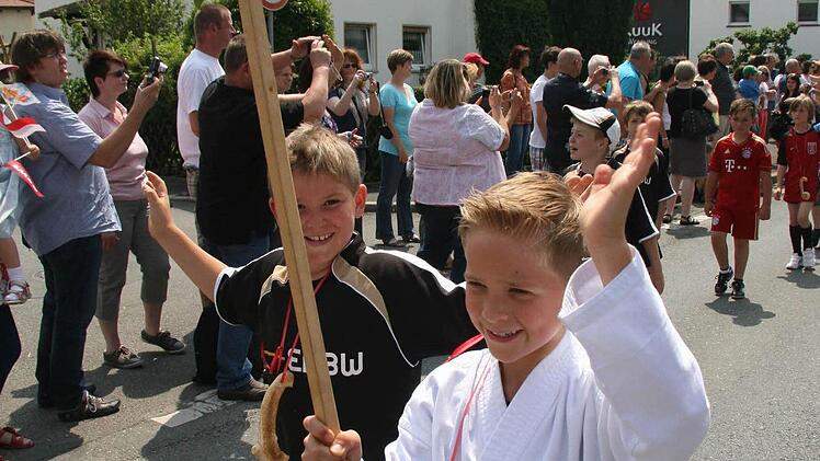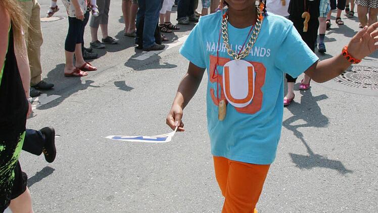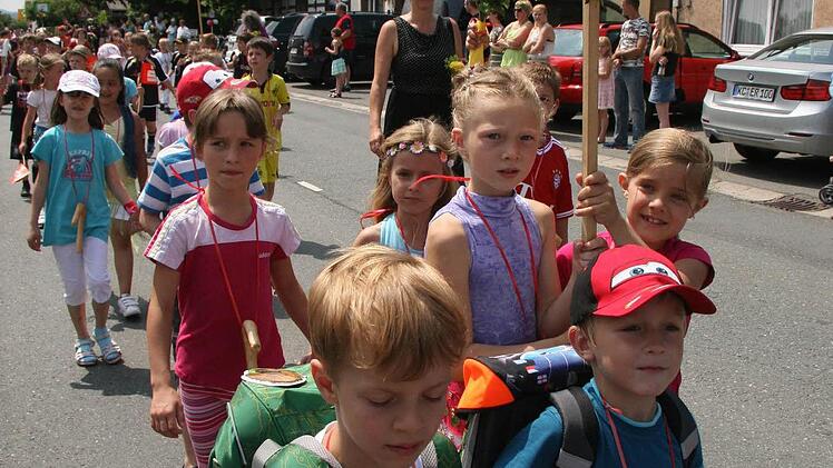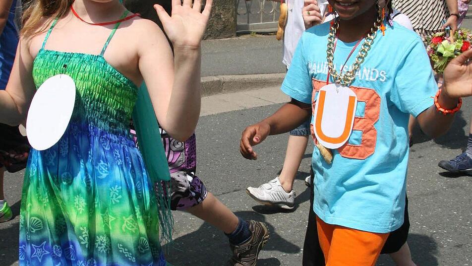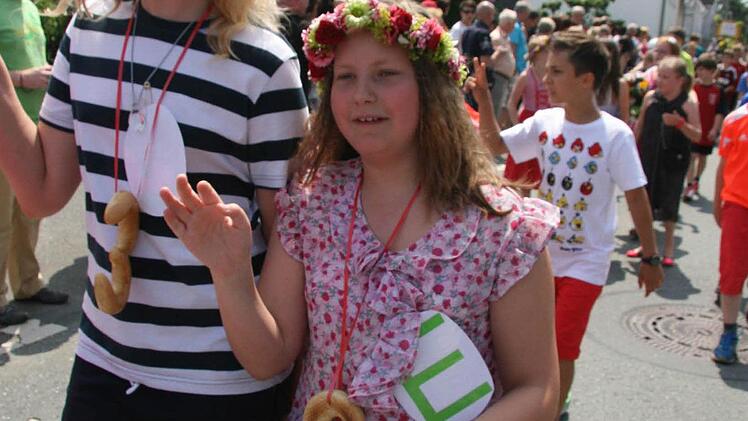 Dass die Kinder der Theodor-Heublein-Schule richtig fit sind, daran ließen sie beim Wiesenfest 2013 keinen Zweifel. Denn zum Festzug kamen die Schüler in Sporttrikots.