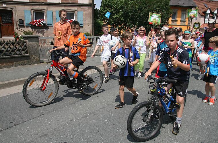 In diesem Jahr drehte sich beim Wiesenfest in Melkendorf alles um das Thema Sport und Bewegung. Die Schüler erschienen zum traditonellen Festzug nicht nur im Trikot, sondern kamen auch noch mit dem Rad.