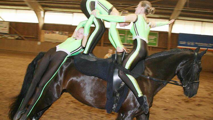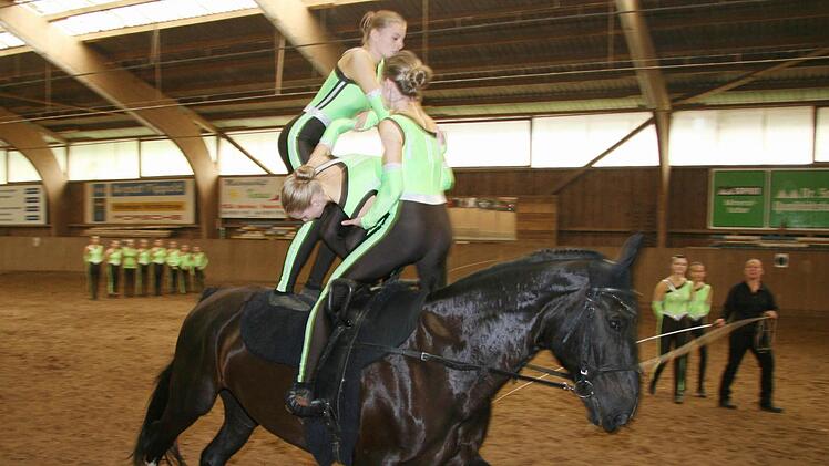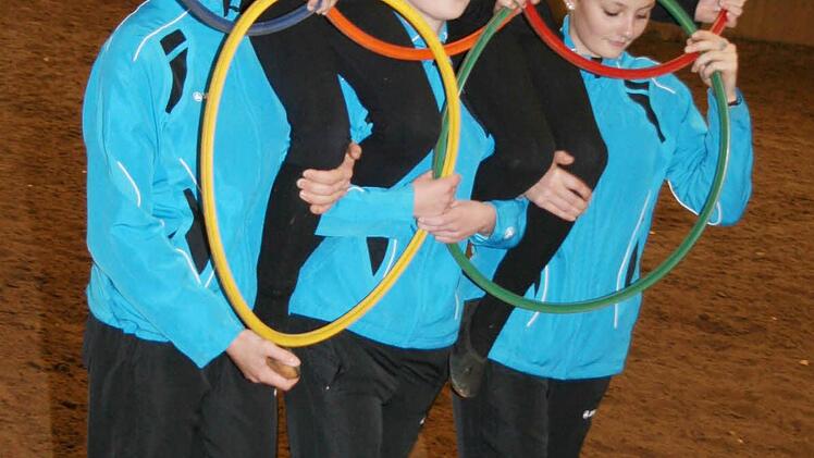 Nicht ohne olympisches Feuer Auch das gehörte dazu: Voltigiermädchen trugen die olympische Flamme und die olympischen Ringe in die Reithalle. Neben den Voltigier- und Akrobatik-Vorführungen der Gruppe "Raise up" aus Kulmbach zeigte die Schützengesellschaft Weismain, wie man mit Pfeilen und dem Bogen richtig umgeht.