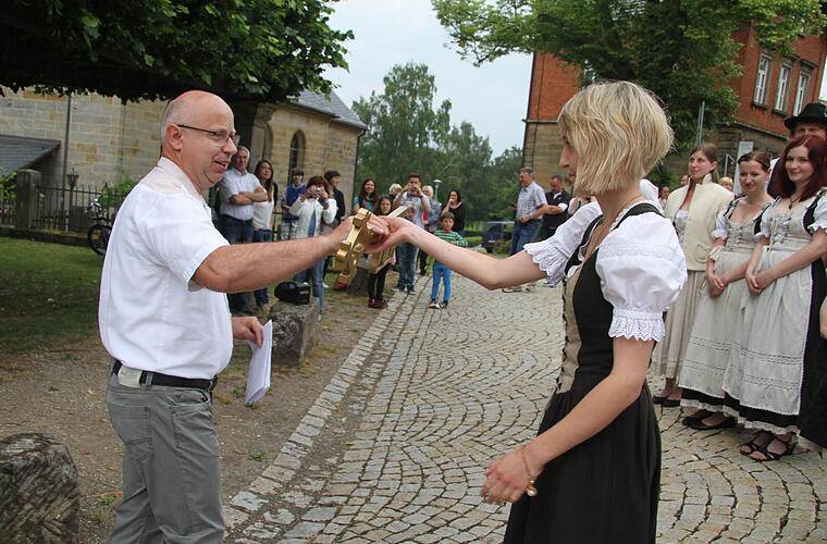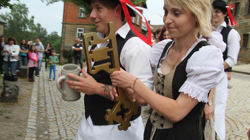 Es ist soweit: Die traditionelle Lindenkirchweih in Peesten ist eröffnet. Der Vorsitzende des Förderkreises, Volker Lauterbach, überreichte nach dem Umzug mit der Kasendorfer Blasmusik den Ortsburschen und Ortsmadla den "Goldenen Schlüssel" für die Linde.