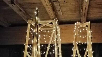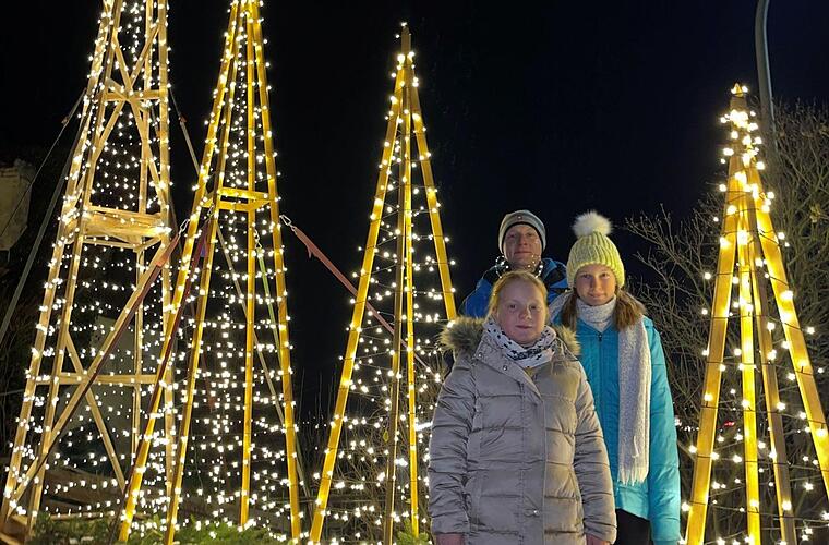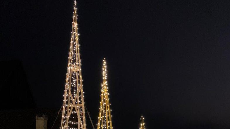Insgesamt 232 Meter Lichterketten schmücken die Holzstangen, 2700 LEDs erleuchten die Nacht.