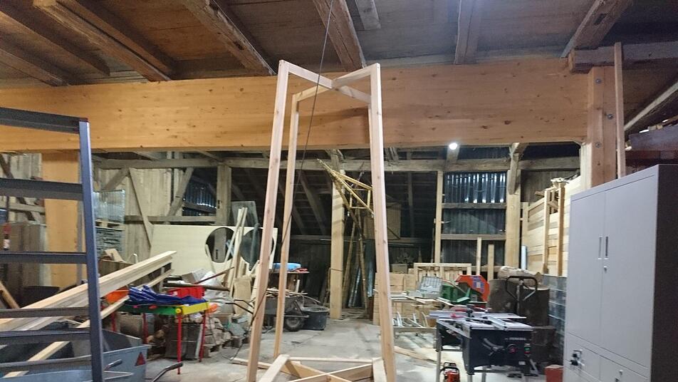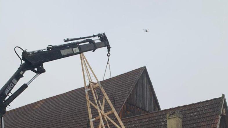 Aber auch seine beiden früheren Arbeitgeber, die Zimmerei Gräf und die Zimmerei Kögel, haben ihm geholfen. Erstere mit Material, letztere wird den Kran für den Abbau bereitstellen.