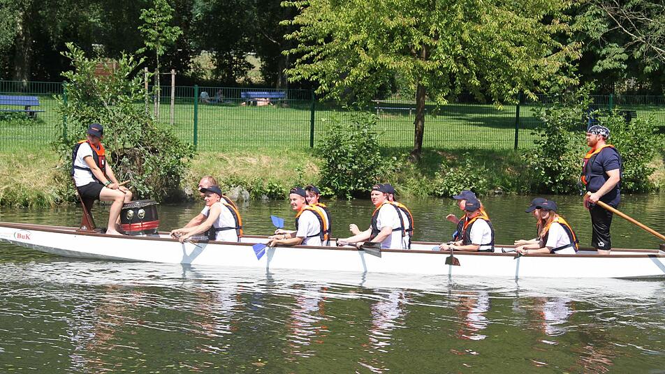 Zehn Ruderer, die alles geben für ihr Team, ein Trommler, der beherzt den Takt angibt. Mehr braucht man nicht, um beim Drachenbootrennen auf dem Weißen Main mit dabei zu sein. In diesem Jahr verpflichtete der frühere Bademeister Sascha Seitz, der inzwischen in Frankfurt arbeitet, drei Steuermänner aus Frankfurt. Joachim Heußner, Frank Olbrich und Andreas Wüttrich versuchten, den Drachenboot-Ruderern die nötigen Kniffe beizubringen, die sie brauchten, um den Wettbewerb meistern zu können.