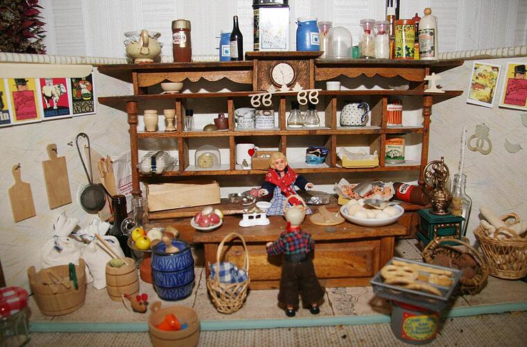 Ungebetene Besucher Eines ihrer Schmuckstücke ist der Kaufmannsladen. Darin ist einfach alles zu finden: vom Mildessa-Sauerkraut über Maggiwürze bis hin zu Sauerkraut vom Fass oder Würstchen aus der Dose. Aus Salzteig hat Gertrud Nöltge selbst Brezeln und Brötchen gefertigt. "Vor zwei Jahren haben mir die Mäuse die Brötchen zerfressen, da hab ich einfach neue gebacken", erzählt die Puppenstubensammlerin.