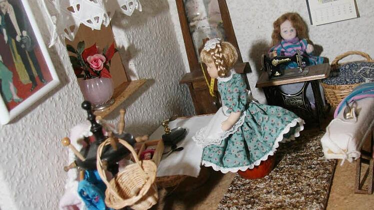 Bücher und Zeitungen inklusive In der kleinen Puppenstubenwelt gibt es ebenso ein Nähzimmer samt Mini-Nähmaschine und Nähkästchen. Sogar ein Bügeleisen und ein Bügelbrett ist in dem Zimmer zu finden. "Mir kommt es eigentlich nicht so sehr auf das Haus an, sondern auf das Ganze. Die Puppenstube muss so aussehen wie eine Wohnung. Da müssen Bücher und Zeitungen sein, da müssen Bilder und Kalender an der Wand hängen", erzählt Gertrud Nöltge.