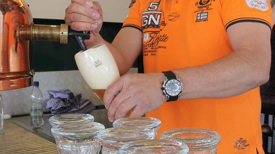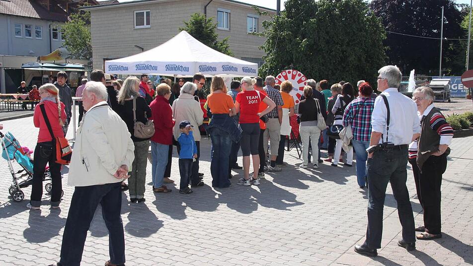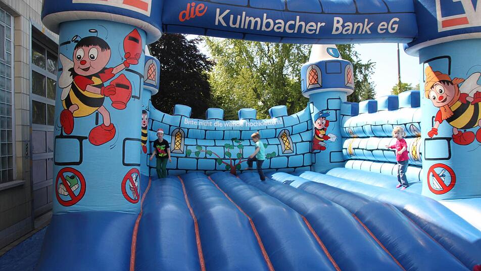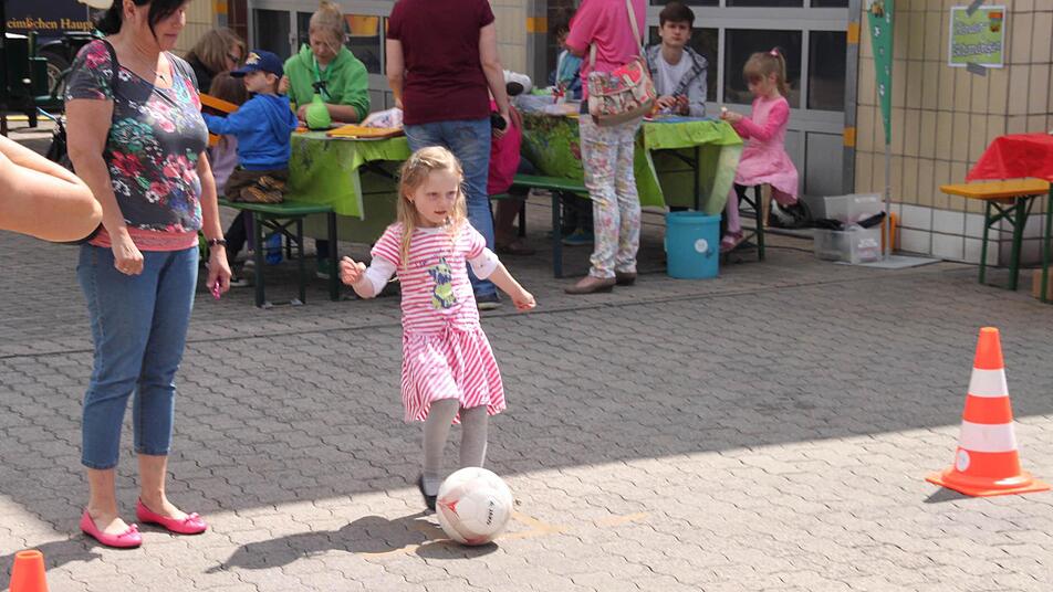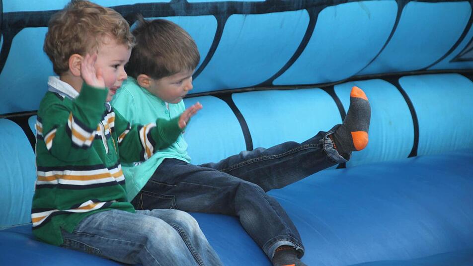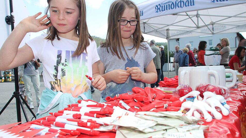 Seit 10 Uhr am Samstagmorgen gibt es Bratwürste, Bier, Klos mit Soß' und natürlich viele Angebote für die Kleinen. Neben einer Torwand und einem Glücksrad steht auch eine Hüpfburg, auf der sich der Nachwuchs austoben kann, während die Erwachsenen es sich zur Musik von Alleinunterhalter Jörg Hofmann gutgehen lassen.