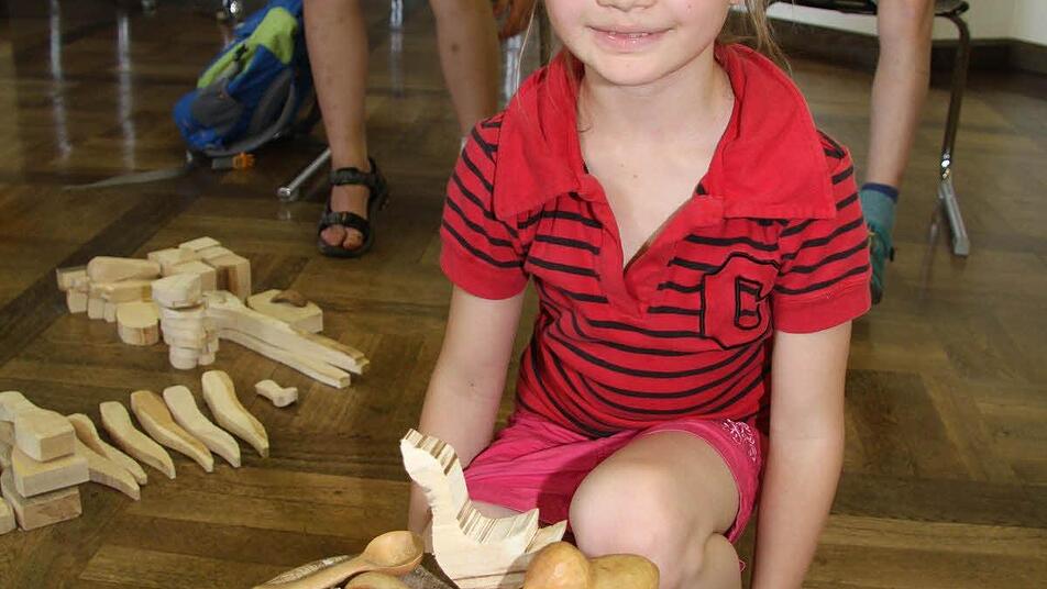 Die Kinder schnitzen sich mit kleinen Projekten sozusagen ein: Tim ist mit acht Jahren schon ein echter Profi. Deshalb wagte er sich nicht nur an ein Herz, sondern an eine Herzschale, die zusätzlich noch ausgehölt werden muss. "Das dauert ganz schön lange", zeigte sich auch Emil (8) erstaunt. Und nicht nur Jungs waren beim Schnitzkurs mit Roland Friedrich selbstbewusst mit von der Partie, auch Mädchen können schnitzen. Anuschka hatte sich eine Ente ausgesucht, probierte den Einstieg dann aber doch mit einem Herz und staunte, wie klein die Teilchen sind, die sie mit dem Schnitzmesser abschnitzte.