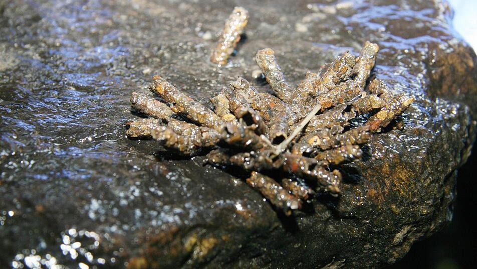 Kein gutes Zeichen Volker Kirschenlohr fischt unterdessen einen Stein aus dem Wasser und dreht in um. Nichts. "Eigentlich müsste ja oberhalb der Kleinrehmühle alles intakt sein, hier unterhalb rührt sich nichts", sieht der Experte auf den ersten Blick und zeigt auf kleine Linien. Die beweisen, dass es auf dem Stein einmal Leben gegeben hat. Auf einem anderen Stein finden sich abstehende kleine Röhren, die ein bisschen wie unscheinbare Korallen ausschauen: verlassene Larvenröhren. Das ist nichts Ungewöhnliches. Denn wenn die Larven geschlüpft sind, bleiben die Röhren zurück, erklärt Kirschenlohr. Doch ungewöhnlich ist, dass sich im Wasser so gar nichts tummelt. Kein gutes Zeichen.