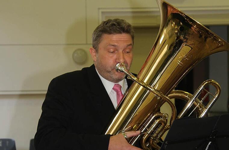 Rainer Streit (Tuba) und Thomas Schimmel (Klavier) eröffneten mit dem Largo und dem Allegro-Satz aus Marcello Benedettos Sonate F-Dur das Konzert. Und Rainer Streit beeindruckte damit, wie leise und zart sich eine solche Tuba spielen lässt.