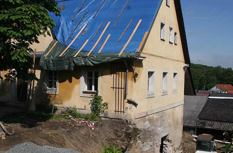 Das älteste Gebäude im Ort Obwohl die Bauarbeiten mit viel Hektik und Stress verbunden sind, geht Pfarrer Wolfgang Oertel in seiner Aufgabe als "Baupfarrer" auf und setzt sich gerne den gelben Bauhelm auf. Denn schließlich baut der Pfarrer nicht für sich, sondern für die ganze Gemeinde und für eine lebendige Zukunft der Gemeinde, erklärt Oertel. "Man muss auch die Historie des Gebäudes kennen", gibt Oertel zu bedenken. Denn bei dem Haus handelt es sich um das älteste Gebäude des Ortes. Es ist schon vor 1707 erbaut und wurde von dem Großbrand, der am 10. August 1706 fast den gesamten Ort vernichtet hat, verschont.