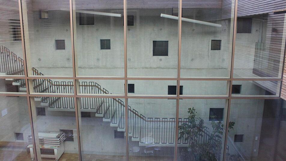 Der wurde für die Busse großzügiger gestaltet. Großzügiger ist auch der Eingangsbereich mit der großen Empfangstheke. Von dort fällt der Blick gleich auf den lichtdurchfluteten Innenhof.