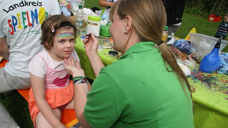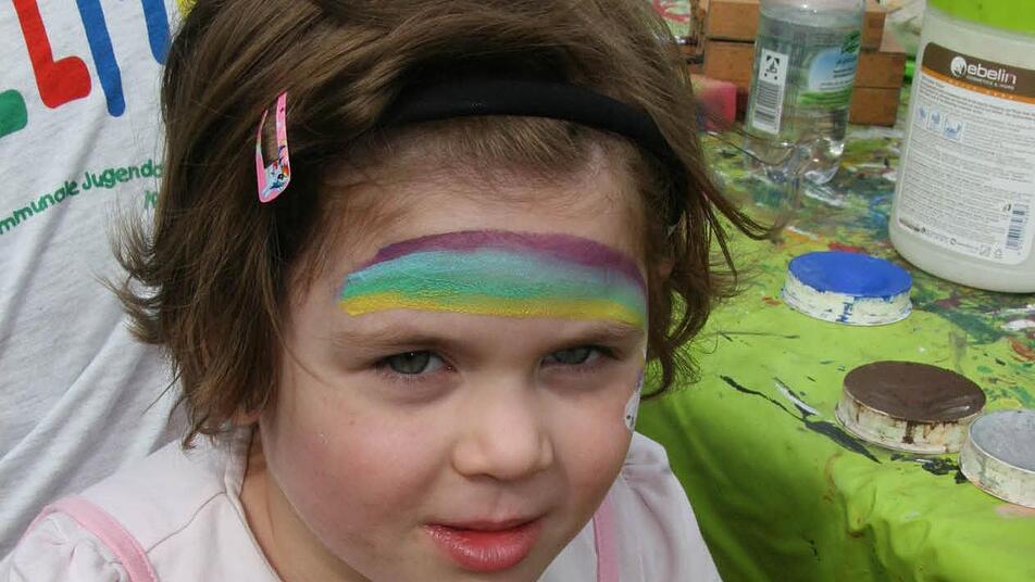Schminken, Hüpfburg und mehr Für die Kinder gab es nachmittags schon Belustigung aller Art: So wollte sich die kleine Emma Zeitler (5) in ein Regenbogen-Mädchen verwandeln und ließ sich vom Schminkteam einen Regenbogen ins Gesicht malen.